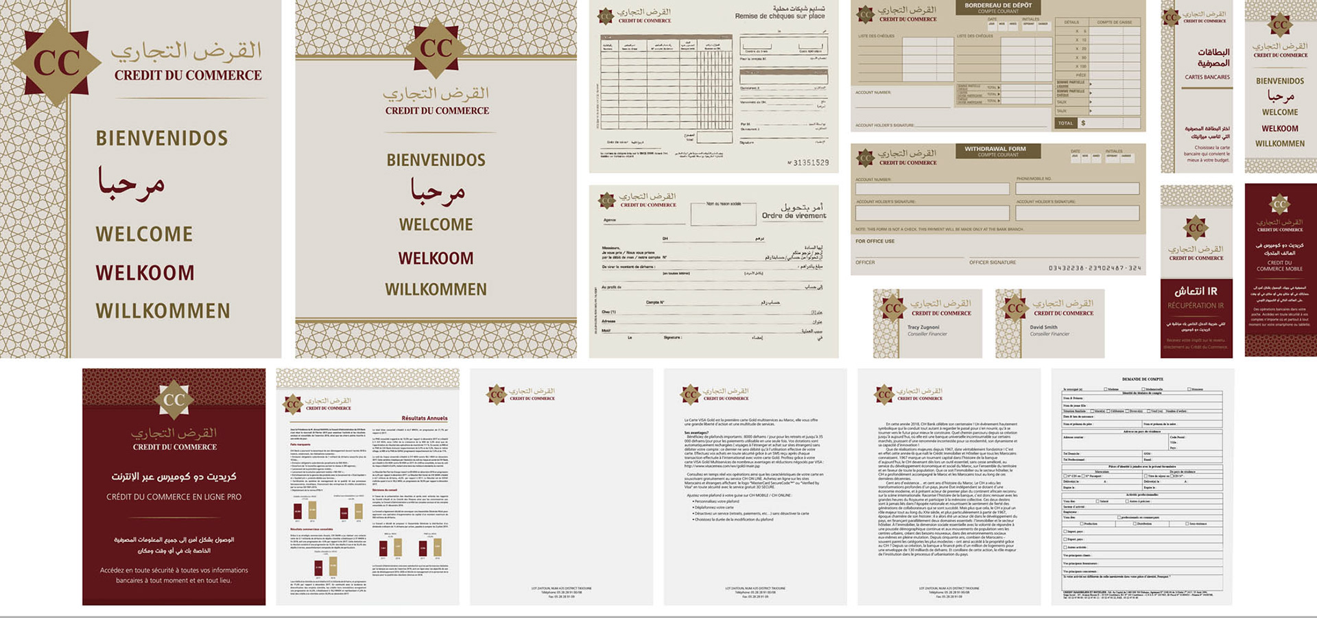 Fictional Moroccan bank logo, branding, and materials.