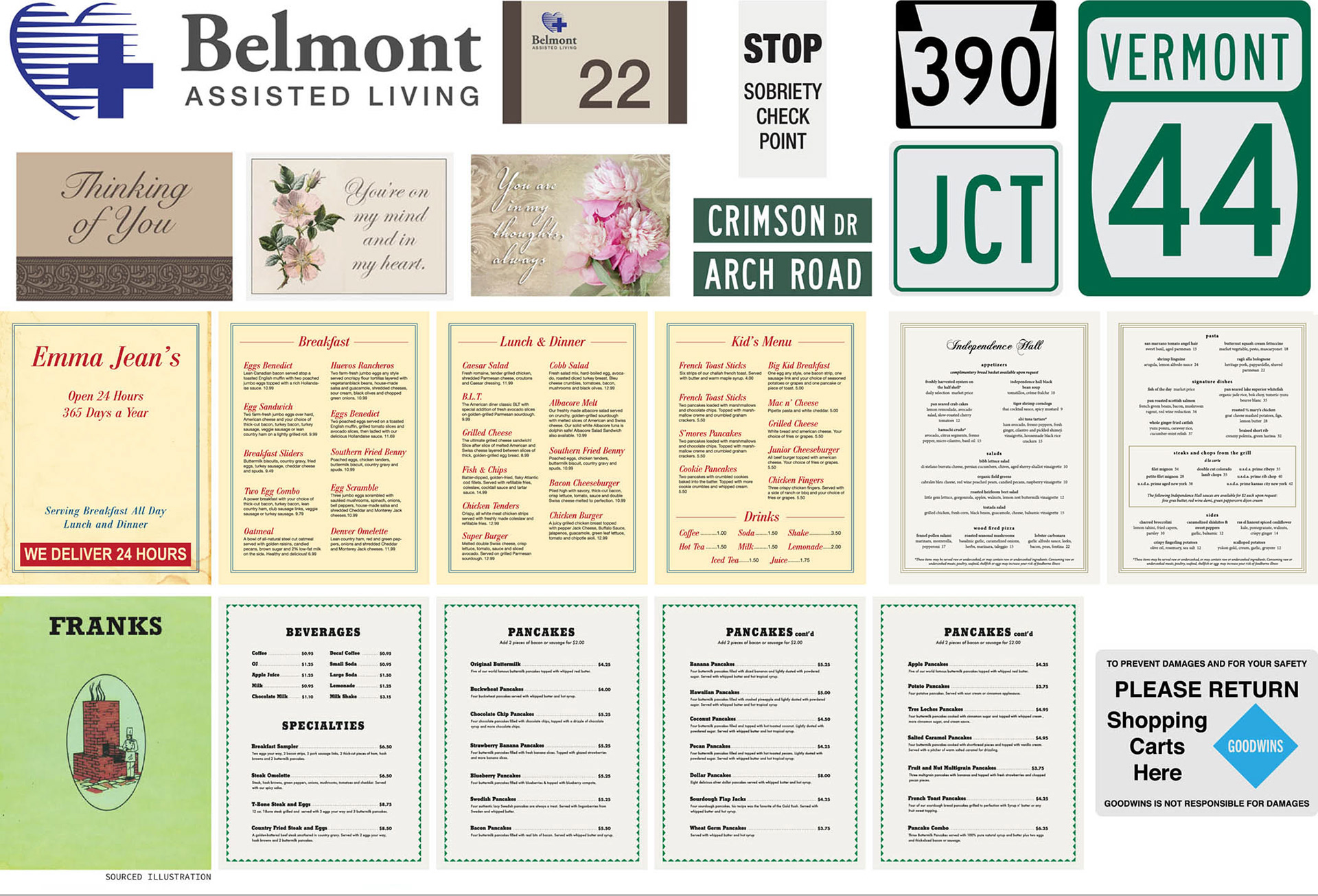 Miscellaneous Vermont logos, signage, menus, etc.